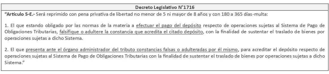 Este nuevo tipo penal responde a la detección de prácticas vinculadas a la falsificación o adulteración de los sustentos utilizados con la finalidad de sustentar el traslado de bienes sujetos al Sistema de Pago de Obligaciones Tributarias (SPOT), específicamente en los siguientes supuestos: